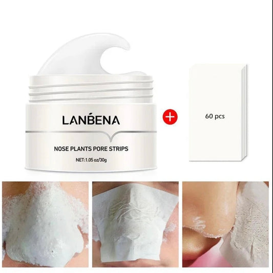 1- Coffret detox Lanbena anti-points noirs et boutons pour le visage et le nez( Sérum+Masque +60 Bandes ).